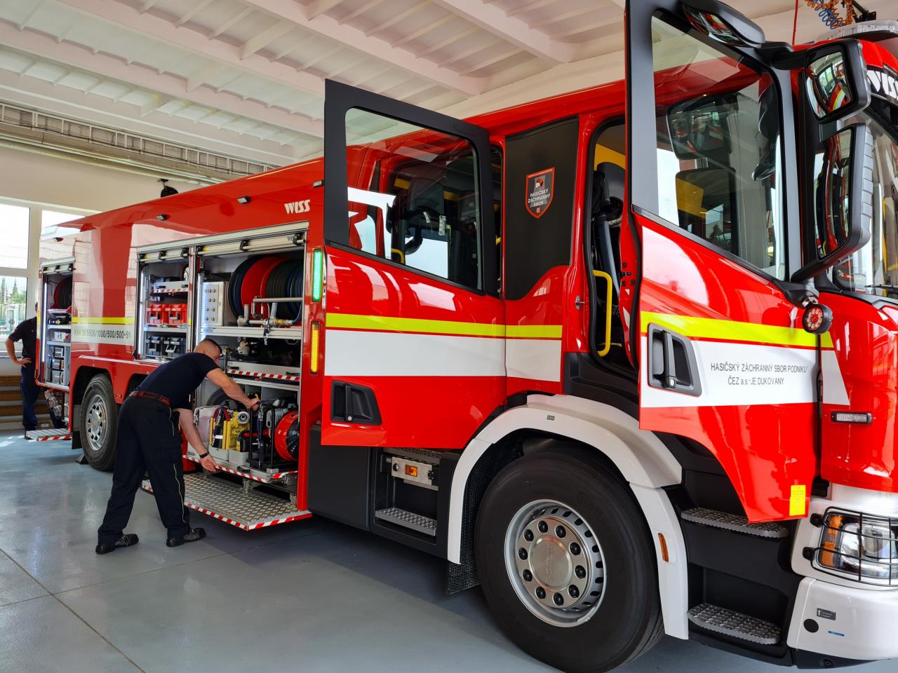 Hasiči v elektrárně Dukovany převzali dva nové vozy se speciální výbavou