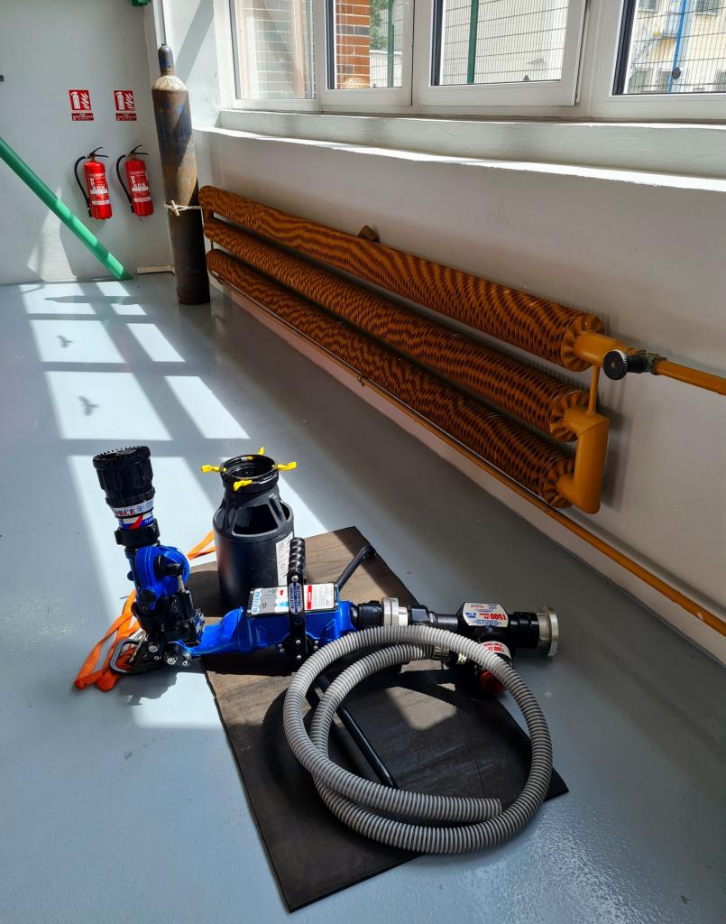 Do výbavy dukovanských hasičů přibyla také speciální ochranná bariéra a automatický oscilační monitor pro ochlazování tlakových lahví. V elektrárně se v rámci výroby i servisních prací používají stovky tlakových lahví. Bariéra slouží k ochraně zasahujících hasičů při případném ochlazování lahví při požáru. Jde o speciální nafukovací konstrukci, jejíž vnitřní část tvoří vodní vak, čelní stěna je opatřena certifikovanými balistickými tabulemi. Díky certifikaci na balistickou ochranu je tato bariéra využitelná i pro případné akce speciální jednotky Policie ČR, která sídlí přímo v areálu elektrárny.