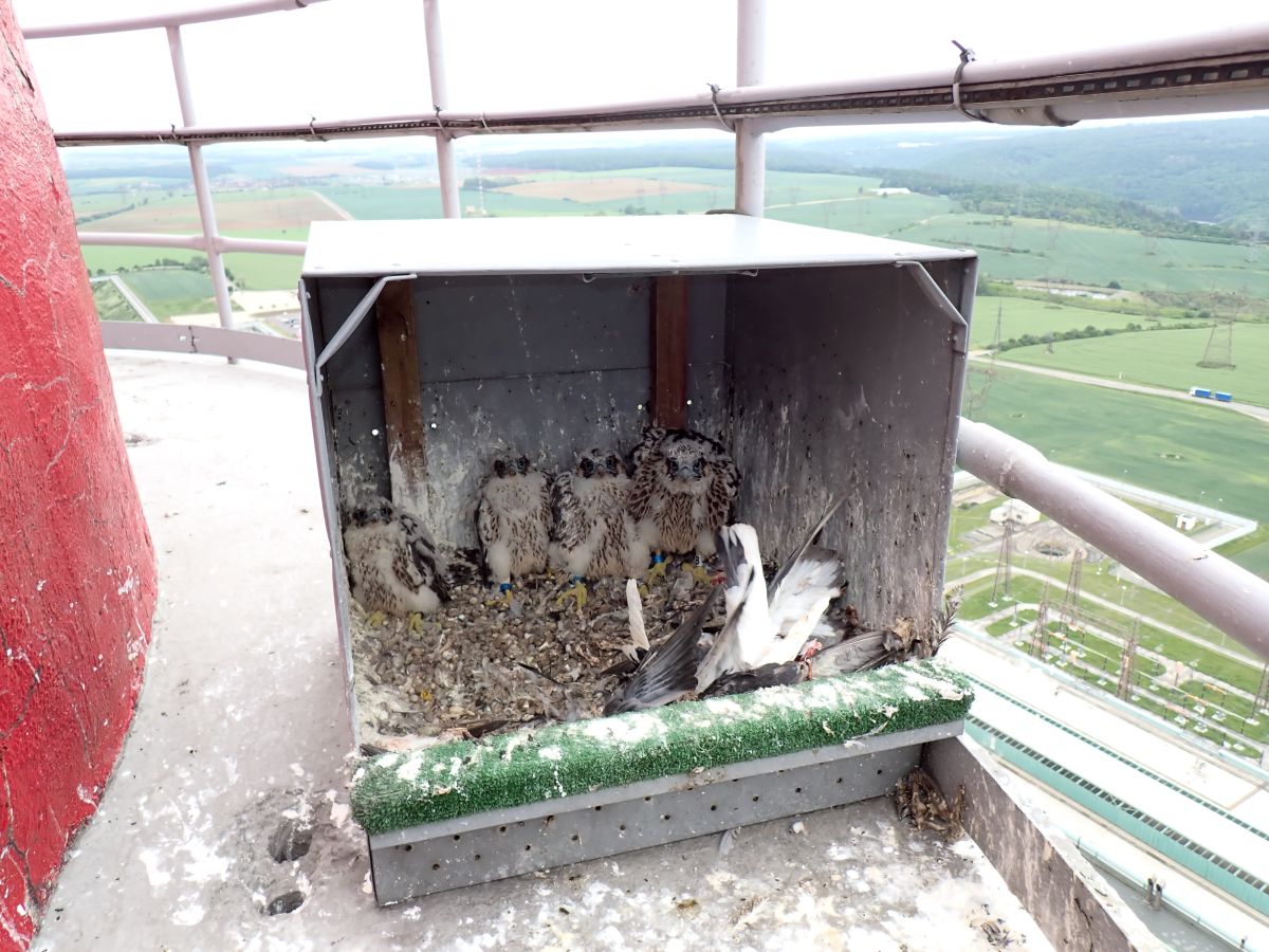 Energetici v Jaderné elektrárně Dukovany opět přispěli k záchraně ohroženého druhu sokola stěhovavého. V připraveném umělém hnízdišti na 125 m vysokém ventilačním komíně se sokolímu páru povedlo opět vysedět čtyři zdravá mláďata, Davida, Lukáše, Radku a Romanu. Jde tak o významnou pomoc při záchraně velmi vzácného a ohroženého druhu, který je chráněn zákonem.